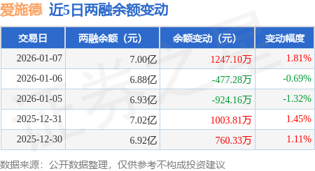 证券之星消息,1月7日,爱施德(002416)融资买入4549.47万元,融资偿还3290.58万元,融资净买入1258.89万元,融资余额7.0亿元。