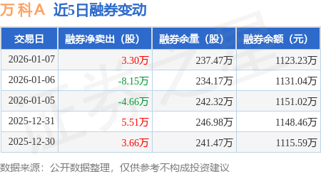 证券之星消息,1月7日,万 科A(000002)融资买入7962.19万元,融资偿还6807.9万元,融资净买入1154.29万元,融资余额30.86亿元。