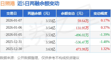 证券之星消息,1月7日,日照港(600017)融资买入592.44万元,融资偿还535.08万元,融资净买入57.36万元,融资余额3.54亿元。