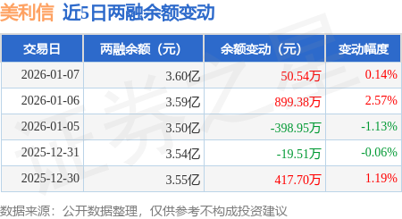 证券之星消息,1月7日,美利信(301307)融资买入3415.47万元,融资偿还3364.93万元,融资净买入50.54万元,融资余额3.6亿元。