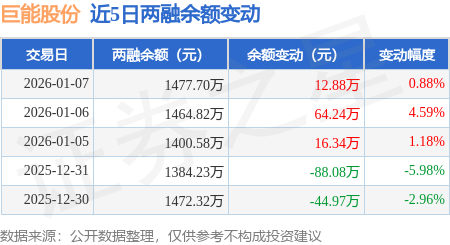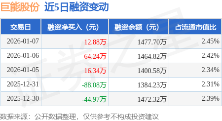 证券之星消息,1月7日,巨能股份(920578)融资买入119.96万元,融资偿还107.08万元,融资净买入12.88万元,融资余额1477.7万元,近3个交易日已连续净买入累计93.47万元,近20个交易日中有11个交易日出现融资净买入。