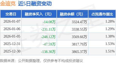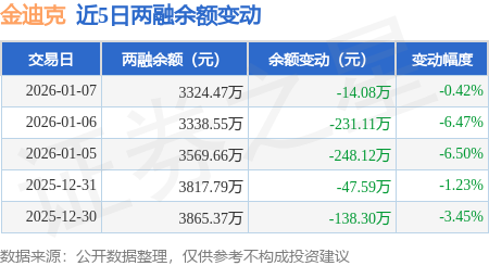 证券之星消息,1月7日,金迪克(688670)融资买入271.85万元,融资偿还285.93万元,融资净卖出14.08万元,融资余额3324.47万元。
