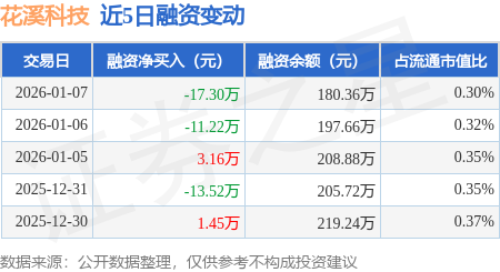 证券之星消息,1月7日,花溪科技(920895)融资买入19.68万元,融资偿还36.98万元,融资净卖出17.3万元,融资余额180.36万元,近20个交易日中有11个交易日出现融资净买入。