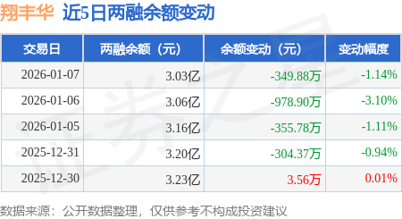 证券之星消息,1月7日,翔丰华(300890)融资买入1718.63万元,融资偿还2068.51万元,融资净卖出349.88万元,融资余额3.03亿元。
