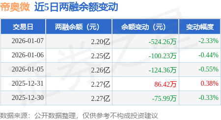 证券之星消息,1月7日,帝奥微(688381)融资买入784.65万元,融资偿还1328.57万元,融资净卖出543.93万元,融资余额2.2亿元。