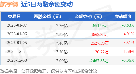 证券之星消息,1月7日,航宇微(300053)融资买入1.88亿元,融资偿还1.95亿元,融资净卖出651.32万元,融资余额7.76亿元。
