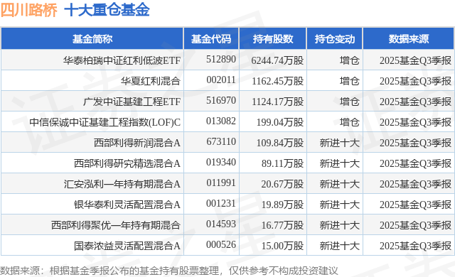 重仓四川路桥的前十大公募基金请见下表: