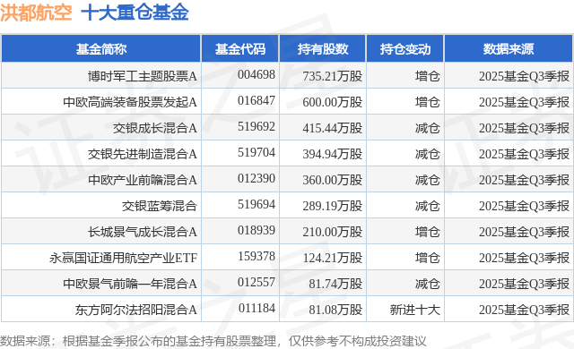 根据2025基金Q3季报公募基金重仓股数据,重仓该股的公募基金共24家,其中持有数量最多的公募基金为博时基金的博时军工主题股票A。博时军工主题股票A目前规模为24.48亿元,最新净值2.147(1月7日),较上一交易日下跌0.69%,近一年上涨63.02%。该公募基金现任基金经理为曾鹏。曾鹏在任的基金产品包括:博时新兴成长混合,管理时间为2013年1月18日至今,期间收益率为231.43%;博时特许价值混合A,管理时间为2018年6月21日至今,期间收益率为299.09%;博时沪港深优质企业基金A,管理时间为2021年1月20日至今,期间收益率为-5.0%;