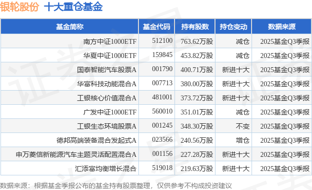 根据2025基金Q3季报公募基金重仓股数据,重仓该股的公募基金共111家,其中持有数量最多的公募基金为南方基金的南方中证1000ETF。南方中证1000ETF目前规模为766.3亿元,最新净值3.206(1月7日),较上一交易日上涨0.53%,近一年上涨40.85%。该公募基金现任基金经理为崔蕾。崔蕾在任的基金产品包括:南方中证申万有色金属ETF发起联接A,管理时间为2019年7月12日至今,期间收益率为214.16%;南方中证申万有色金属ETF,管理时间为2019年7月12日至今,期间收益率为228.64%;南方红利低波50ETF,管理时间为2020年1月17日至今,期间收益率为96.5%。