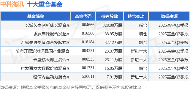 重仓中科海讯的公募基金请见下表: