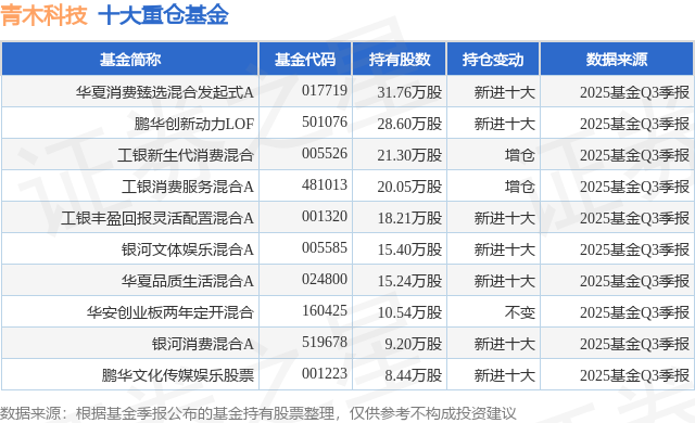 重仓青木科技的前十大公募基金请见下表: