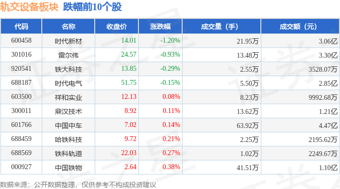证券之星消息,1月8日轨交设备板块较上一交易日上涨0.61%,必得科技领涨。当日上证指数报收于4082.98,下跌0.07%。深证成指报收于13959.48,下跌0.51%。轨交设备板块个股涨跌见下表: