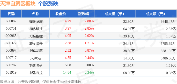 证券之星消息,1月8日天津自贸区板块较上一交易日下跌0.02%,中远海控领跌。当日上证指数报收于4082.98,下跌0.07%。深证成指报收于13959.48,下跌0.51%。天津自贸区板块个股涨跌见下表:
