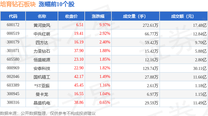 从资金流向上来看,当日培育钻石板块主力资金净流入7.76亿元,游资资金净流出3.83亿元,散户资金净流出3.93亿元。培育钻石板块个股资金流向见下表: