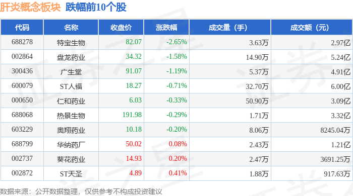 证券之星消息,1月8日肝炎概念板块较上一交易日上涨0.56%,普蕊斯领涨。当日上证指数报收于4082.98,下跌0.07%。深证成指报收于13959.48,下跌0.51%。肝炎概念板块个股涨跌见下表: