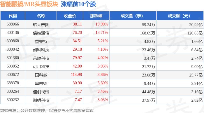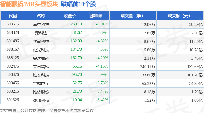 从资金流向上来看,当日智能眼镜/MR头显板块主力资金净流出60.8亿元,游资资金净流入19.76亿元,散户资金净流入41.05亿元。智能眼镜/MR头显板块个股资金流向见下表:
