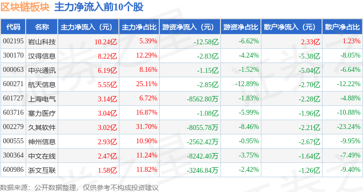 从资金流向上来看,当日区块链板块主力资金净流出14.92亿元,游资资金净流出11.48亿元,散户资金净流入26.39亿元。区块链板块个股资金流向见下表: