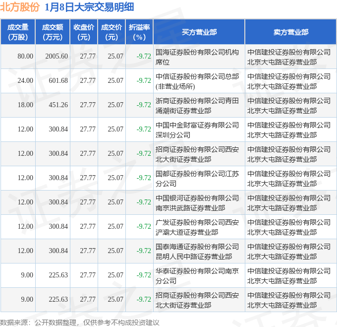 证券之星消息,1月8日北方股份发生大宗交易,交易数据如下: