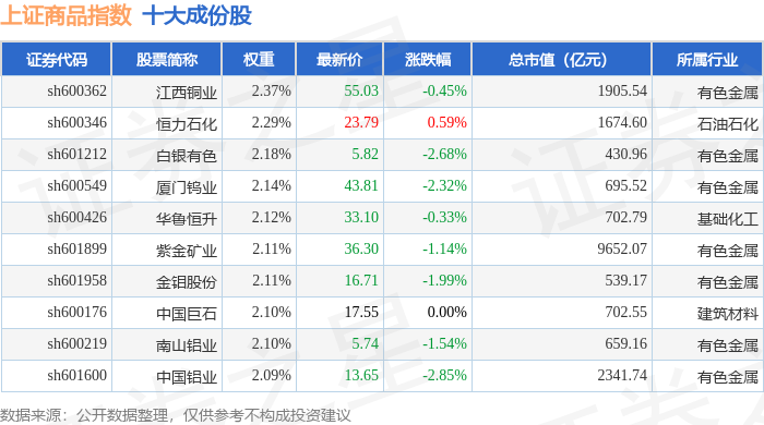 上证商品(000066)指数十大成份股详情如下: