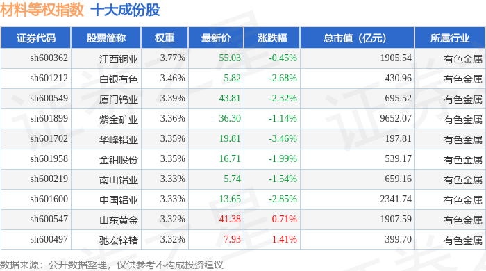 材料等权(000071)指数十大成份股详情如下: