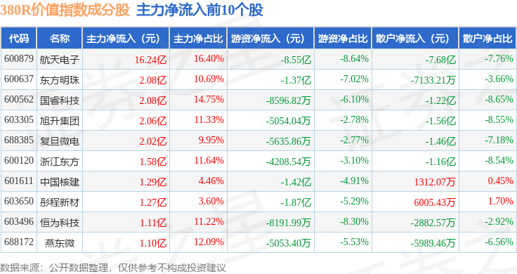 资金流向方面,380R价值(000120)指数成份股当日主力资金净流出合计36.63亿元,游资资金净流入合计6.57亿元,散户资金净流入合计30.06亿元。成份股资金流向详情见下表:
