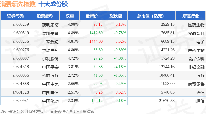 消费领先(000148)指数十大成份股详情如下: