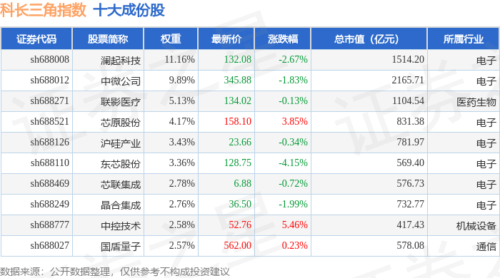 科长三角(000695)指数十大成份股详情如下: