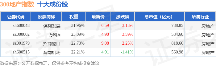 300地产(000952)指数十大成份股详情如下:
