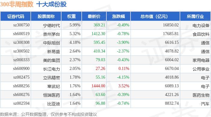 300非周(000969)指数十大成份股详情如下: