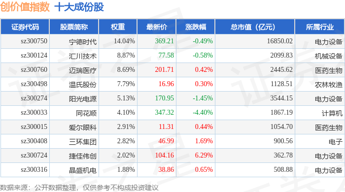 创价值(399295)指数十大成份股详情如下: