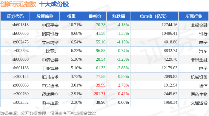 创新示范(399351)指数十大成份股详情如下: