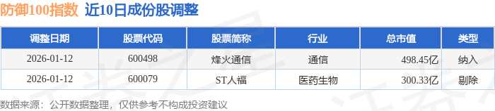 近10日内防御100(399403)指数成份股做了调整,新纳入了1只股票,剔除了1只股票。