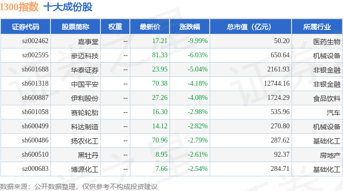 I300(399416)指数十大成份股详情如下: