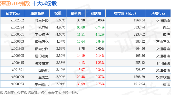 资金流向方面,深证GDP(399648)指数成份股当日主力资金净流出合计81.22亿元,游资资金净流入合计40.67亿元,散户资金净流入合计40.55亿元。成份股资金流向详情见下表: