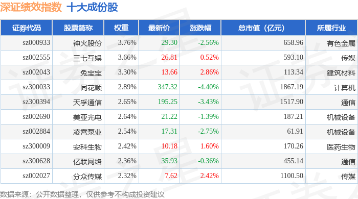 资金流向方面,深证绩效(399655)指数成份股当日主力资金净流出合计39.69亿元,游资资金净流入合计2.45亿元,散户资金净流入合计37.24亿元。成份股资金流向详情见下表: