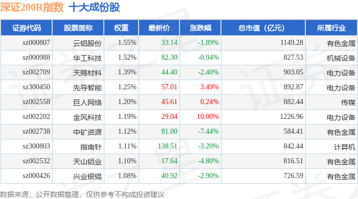 深证200R(399679)指数十大成份股详情如下: