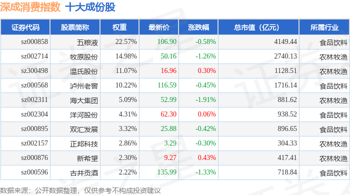 深成消费(399684)指数十大成份股详情如下: