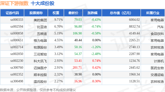 深证下游(399706)指数十大成份股详情如下: