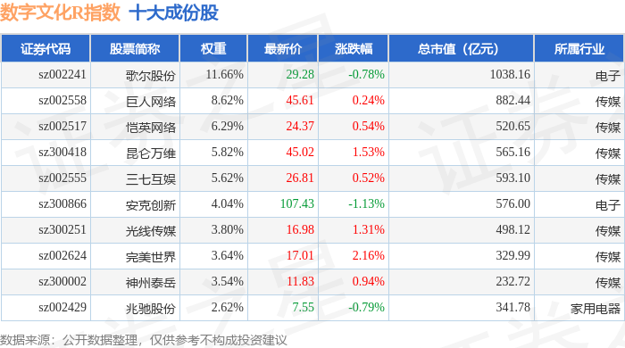 资金流向方面,数字文化R(470047)指数成份股当日主力资金净流出合计5.04亿元,游资资金净流入合计1.86亿元,散户资金净流入合计3.17亿元。成份股资金流向详情见下表:
