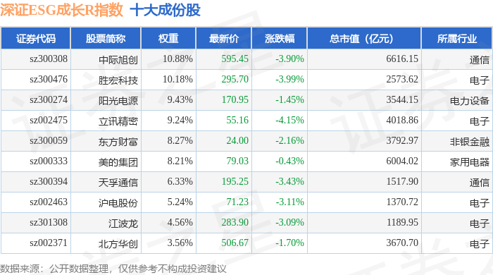 深证ESG成长R(470060)指数十大成份股详情如下: