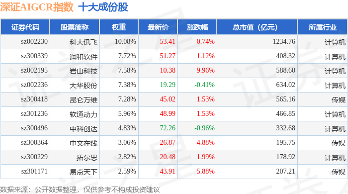 深证AIGCR(470075)指数十大成份股详情如下: