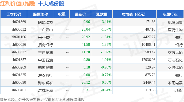 红利价值R(489016)指数十大成份股详情如下:
