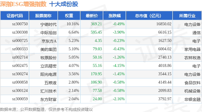 深指ESG增强(970032)指数十大成份股详情如下: