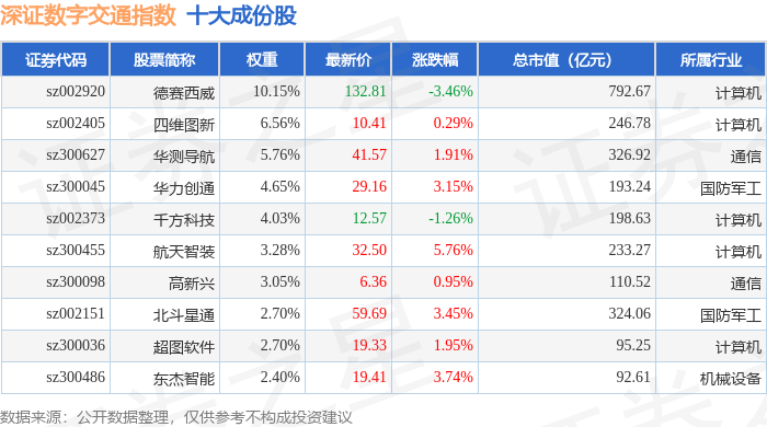 深证数字交通(970049)指数十大成份股详情如下: