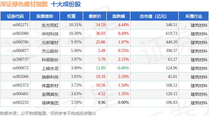 资金流向方面,深证绿色建材(970077)指数成份股当日主力资金净流入合计4.62亿元,游资资金净流出合计1.52亿元,散户资金净流出合计3.11亿元。成份股资金流向详情见下表: