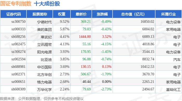 国证专利(980070)指数十大成份股详情如下: