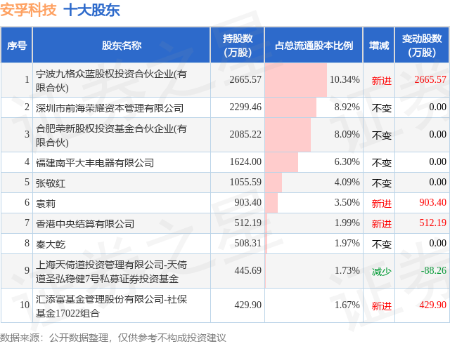 根据安孚科技2025年三季报公布的十大股东详情如下: