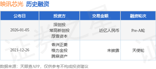 证券之星消息,根据天眼查APP于1月5日公布的信息整理,珠海映讯芯光科技有限公司Pre-A轮融资,融资额近亿人民币,参与投资的机构包括深创投,常高新创投,厚雪资本。
