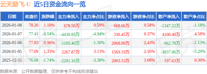 证券之星消息,截至2026年1月8日收盘,云天励飞(688343)报收于78.26元,上涨1.1%,换手率5.48%,成交量14.47万手,成交额11.46亿元。