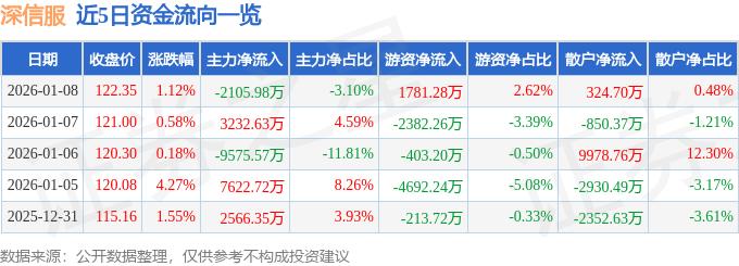 证券之星消息,截至2026年1月8日收盘,深信服(300454)报收于122.35元,上涨1.12%,换手率2.01%,成交量5.56万手,成交额6.8亿元。